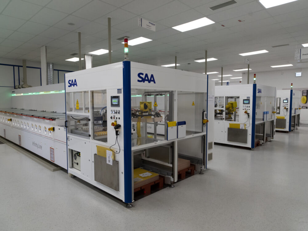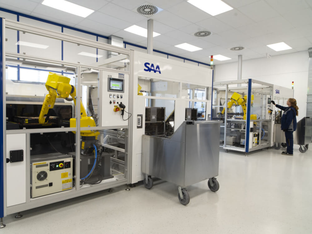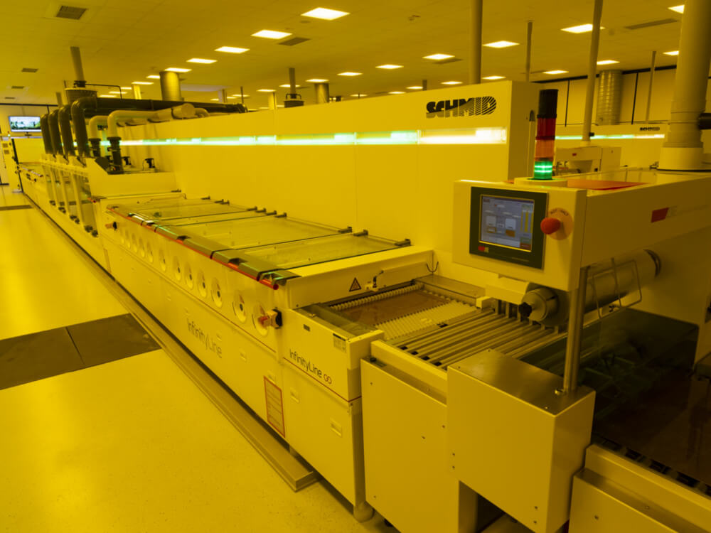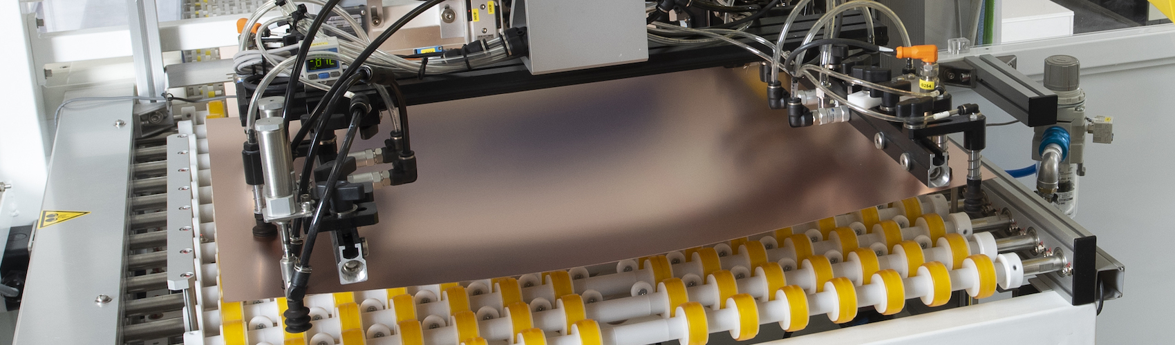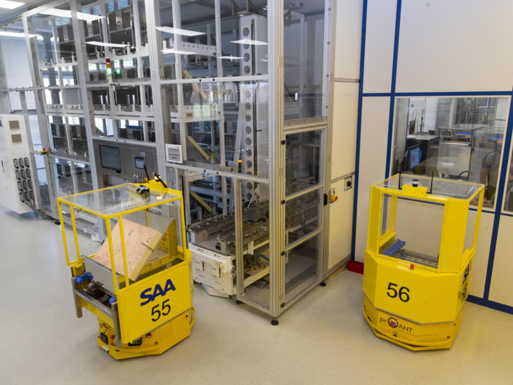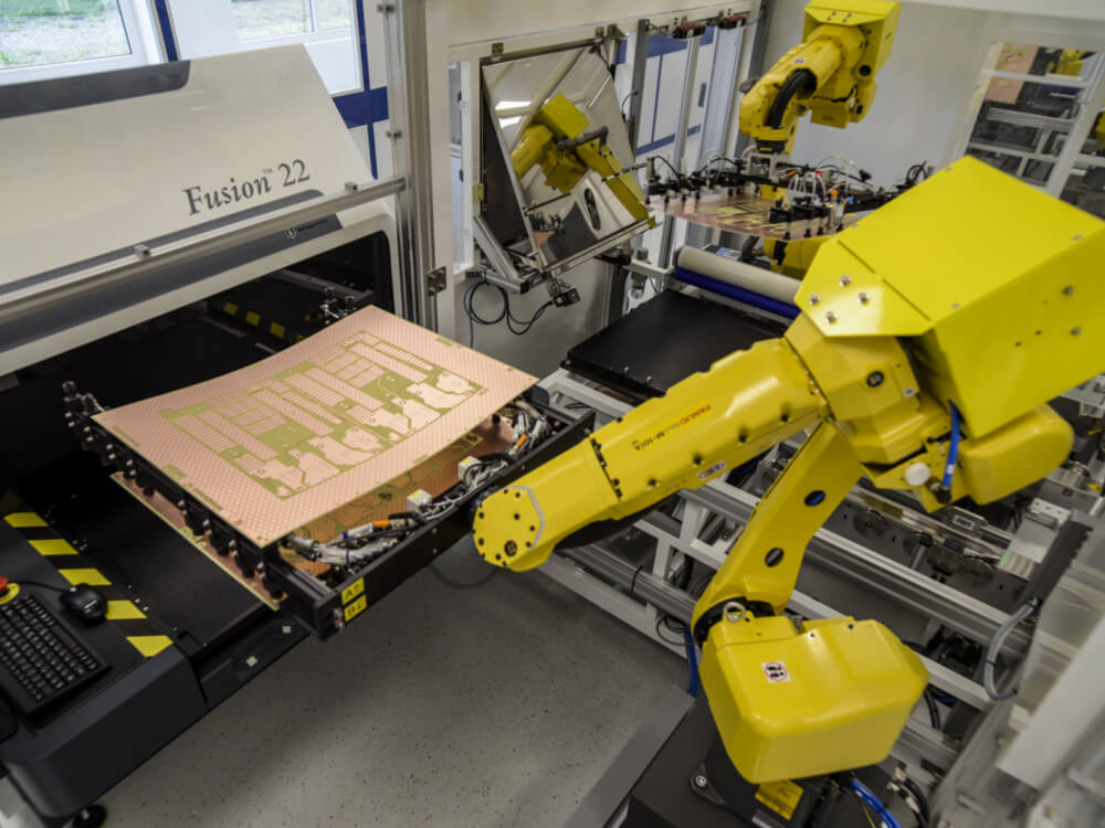 The manufacturing is characterized by its high degree of automation and digitalization. This already begins with the computer controlled stores and draws through the entire process and material flow. The traceability for each PCB via its barcode, robot-controlled handling devices and machinery as well as autonomous pallet truck transporters are factors, which additionally ensure top level quality. The category 10.000 clean rooms (inside optical device unit 1.000), similar to those for chip manufacturing and digital PCB exposure, contribute extra to this.